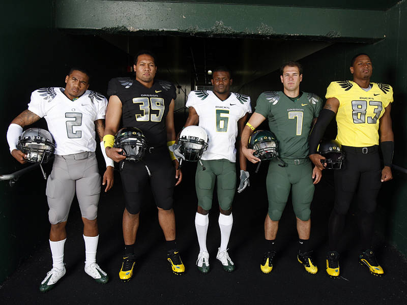 Even with the jerseys that took the field for most of the games last year, with the grips on the shoulders that looked like metal treads, I thought they always looked snazzy. After all, Oregon with wacky looking uniforms is kind of what makes them Oregon in the 21st century. They are innovators in that respect.